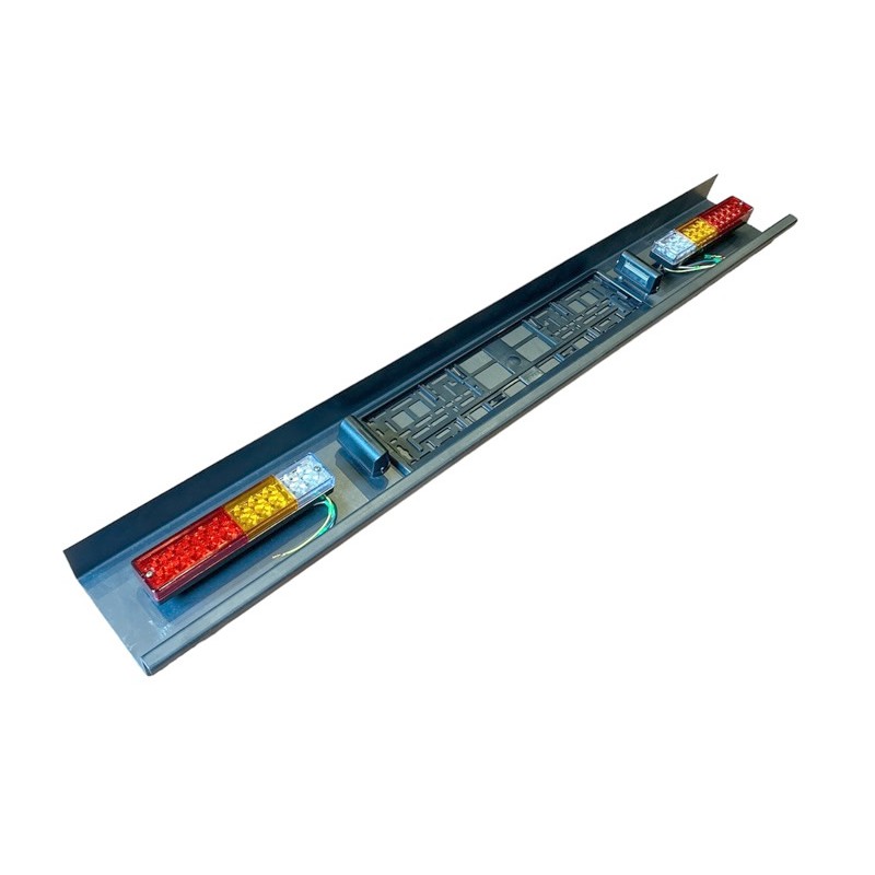 Belka świateł z kompletem lamp tylnych LED, z lampami LED podświetlenia tablicy rejestracyjnej oraz ramką pod tablicę rejestracyjną.