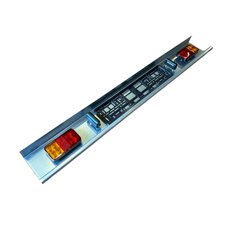 Belka świateł z kompletem lamp tylnych LED, z lampami LED podświetlenia tablicy rejestracyjnej oraz ramką pod tablicę rejestracyjną.