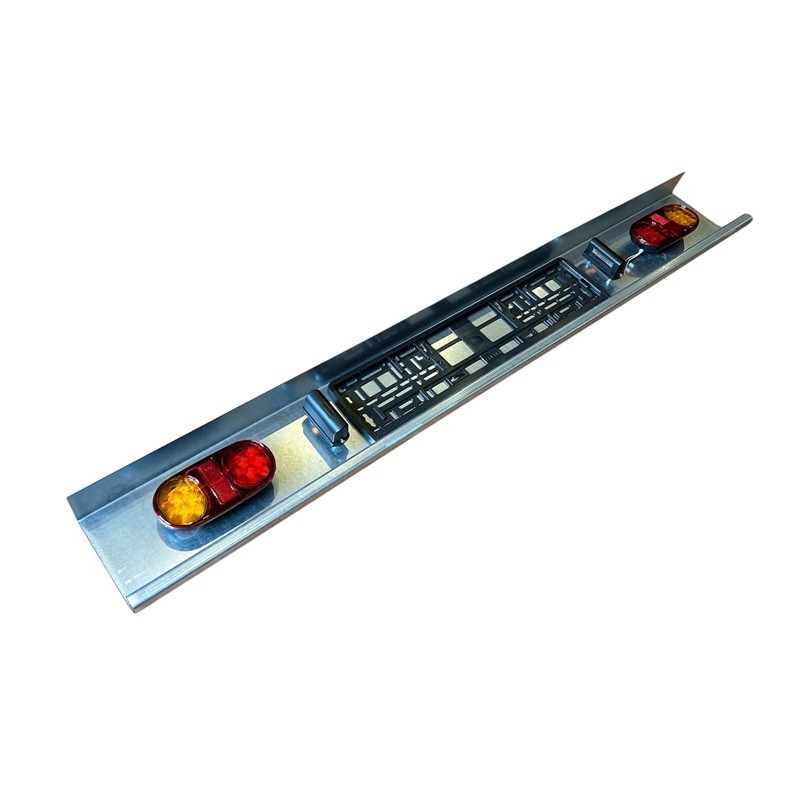Belka świateł z kompletem lamp tylnych LED, z lampami LED podświetlenia tablicy rejestracyjnej oraz ramką pod tablicę rejestracyjną.