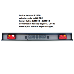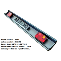 Belka świateł - zderzak pod światła w raz z lampami długość L2000 - grubość blachy 2 mm - (dostępne też inne długości oraz grubość blachy 3 mm) zakończenia belki ZB2 - 2szt. lampy tylne LED - 2szt obrysówki LED na wysięgniku krótkim - 2szt podświetlenie tablicy rejestracyjne LED 2 szt - LTD702, ramka pod tablice rejestracyjną, Czytaj poniżej opis