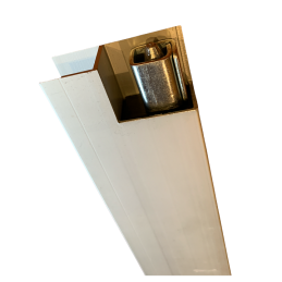 Zamek pionowy burty aluminiowej H400 z noskiem uszczelniającym Strona PRAWA burty - ważne - patrz zdjęcie z pozycjonowaniem zamka na zabudowie Wymiary podane na zdjęciu