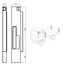 Słupek tylny, stosowany w zabudowach typ wywrotka. Może być do burty aluminiowe jak i stalowej. Słupek z ryglami System montażu - wyciągany. W zestawie kieszeń do montażu. Patrz strona montażu na zdjęciu. waga 6,90kg