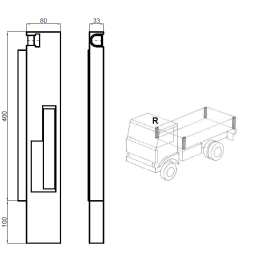 Słupek tylny, stosowany w zabudowach typ wywrotka. Może być do burty aluminiowe jak i stalowej. Słupek z ryglami System montażu - wyciągany. W zestawie kieszeń stożkowa do montażu. Patrz strona montażu na zdjęciu. waga 6,90kg