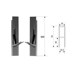 Zamek pionowy burty aluminiowej H600 z noskiem uszczelniającym Strona PRA2WA burty - ważne - patrz zdjęcie z pozycjonowaniem zamka na zabudowie Wymiary podane na zdjęciu