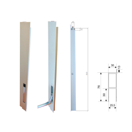 Zamek pionowy burty aluminiowej H800 z noskiem uszczelniającym Strona PRAWA burty - ważne - patrz zdjęcie z pozycjonowaniem zamka na zabudowie Wymiary podane na zdjęciu