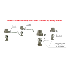 Kule do wywrotu na trzy strony. System montażu - poziomy. W komplecie : - 4 kule - 4 kielichy - 2 sworznie Wymiary podane na zdjęciu Waga 9,300 kg