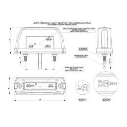 Grupa lamp HOR 47 Ilość diod LED 6 Kategoria lampy oświetlenia tablicy Światło pozycyjne tylne tak Oświetlenie tablicy rejestracyjnej boczne tak Napięcie zasilające 12/24 V Moc znamionowa L – 0,25/0,5 W; R – 0,3/0,5 W Zakres temperatury pracy od -30°C do +50°C Przewód 2×0,75 mm2; długość przewodu 0,25 m Strona montażu uniwersalna...