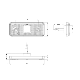 Lampa diodowa LED tak Ilość LED 2 Kategoria lampy obrysowa Strona montażu uniwersalna Napięcie zasilające 12/24 V Przewód 2×0,75 mm2; długość przewodu 0,12 m Światło obrysowe boczne tak Zakres temperatury pracy od -30°C do +50°C Homologacja na kloszu E8