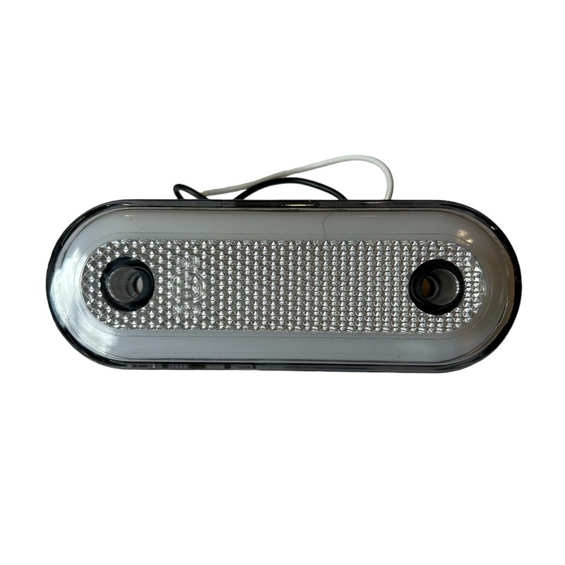 Lampa diodowa (LED) tak Kategoria lampy obrysowa Grupa lamp EMA 20 Strona montażu uniwersalna Napięcie zasilające 12/24 V Moc znamionowa 0,4/1,2 W Przewód 2×0,75 mm2; długość przewodu 0,45 m Ilość diod LED 3 Światło obrysowe boczne tak Odblask tak Zakres temperatury pracy od -30°C do +50°C