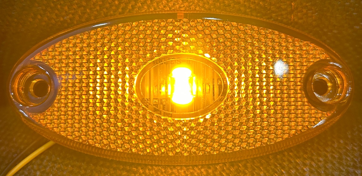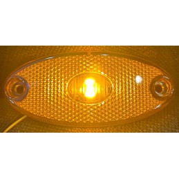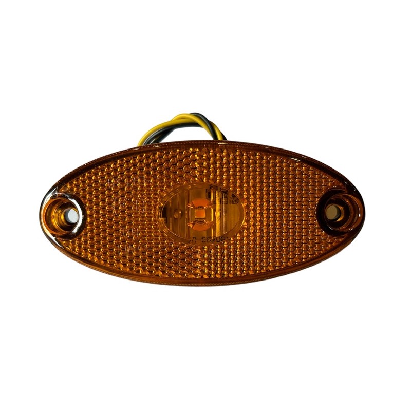 Lampa diodowa (LED) tak Kategoria lampy obrysowa Grupa lamp HOR 55 Strona montażu uniwersalna Napięcie zasilające 12/24 V Moc znamionowa 0,4/0,7 W Przewód 2×0,75 mm2; długość przewodu 0,3 m Ilość diod LED 3 Światło obrysowe boczne tak Odblask tak Zakres temperatury pracy od -30°C do +50°C