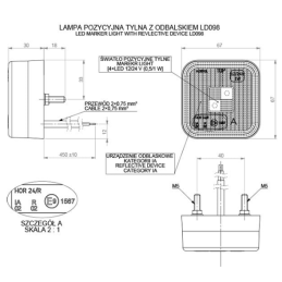 42wymiary podane na zdjęciu LED - ilość 3 homologacja na kloszu - E8 dodatkowa funkcja odblaskowa napięcie zasilające 12/24V przewód zasilający 2x0,75 mm - długość 0,45 metra