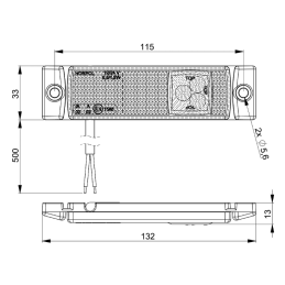 Lampa diodowa (LED) tak Kategoria lampy obrysowa Grupa lamp HOR 55 Strona montażu uniwersalna Napięcie zasilające 12/24 V Moc znamionowa 0,4/0,7 W Przewód 2×0,75 mm2; długość przewodu 0,3 m Ilość diod LED 3 Światło pozycyjne tylne tak Odblask tak Zakres temperatury pracy od -30°C do +50°C