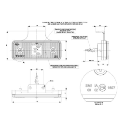 Lampa diodowa (LED) tak Kategoria lampy obrysowa Grupa lamp HOR 55 Strona montażu uniwersalna Napięcie zasilające 12/24 V Moc znamionowa 0,4/0,7 W Przewód 2×0,75 mm2; długość przewodu 0,3 m Ilość diod LED 3 Światło obrysowe boczne tak Odblask tak Zakres temperatury pracy od -30°C do +50°C