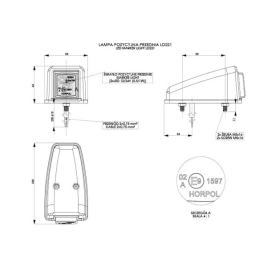 Grupa lamp HOR 72 Ilość diod LED 2 Kategoria lampy obrysowa Napięcie zasilające 12/24 V Moc znamionowa 0,6/1,2 W Zakres temperatury pracy od -30°C do +50°C Przewód 2×0,35 mm2; długość przewodu 0,3 m Światło obrysowe boczne tak Strona montażu uniwersalna Lampa diodowa (LED) tak