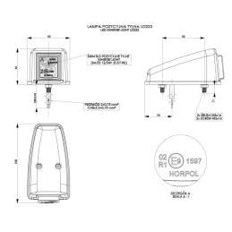 Lampa diodowa (LED) tak Kategoria lampy obrysowa Grupa lamp HOR 65 Strona montażu uniwersalna Napięcie zasilające 12/24 V Moc znamionowa 0,5/1 W Przewód 2×0,75 mm2; długość przewodu 0,25 m Ilość diod LED 4 Światło pozycyjne przednie tak Zakres temperatury pracy od -30°C do +50°C