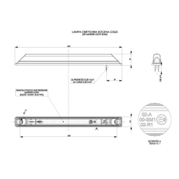 Lampa diodowa LED tak Ilość LED 2 Kategoria lampy obrysowa Strona montażu uniwersalna Napięcie zasilające 12/24 V Przewód 2×0,75 mm2; długość przewodu 0,12 m Światło obrysowe boczne tak Zakres temperatury pracy od -30°C do +50°C Homologacja na kloszu E8