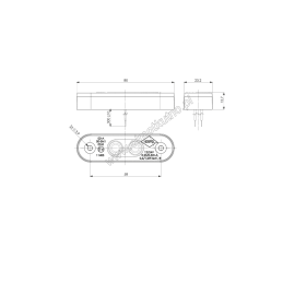 Lampa diodowa LED tak Ilość LED 2 Kategoria lampy obrysowa Strona montażu uniwersalna Napięcie zasilające 12/24 V Przewód 2×0,75 mm2; długość przewodu 0,12 m Światło obrysowe boczne tak Zakres temperatury pracy od -30°C do +50°C Homologacja na kloszu E8