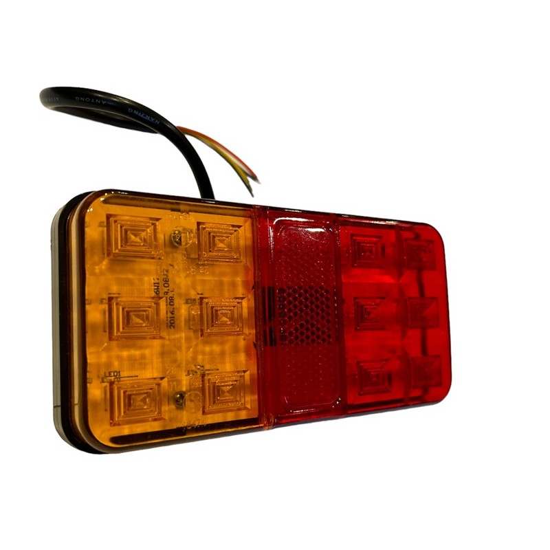 Lampa diodowa (LED) tak Kategoria lampy zespolona tylna Strona montażu uniwersalna Napięcie zasilające 12/24 V Przewód 4×0,5 mm2; Ilość diod LED 20 Światło pozycyjne tylne tak Światło hamowania tak Kierunkowskaz tylny tak Światło cofania tak Zakres temperatury pracy od -30°C do +50°C
