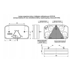 Lampa diodowa (LED) tak Kategoria lampy zespolona tylna Grupa lamp HOR 56 Strona montażu lewa Napięcie zasilające 12/24 V Przewód brak Ilość diod LED 23 Światło pozycyjne tylne tak Światło cofania tak Światło hamowania tak Kierunkowskaz tylny tak Odblask tak Zakres temperatury pracy od -30°C do +50°C