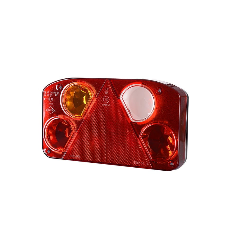 Lampa żarówkowa tak Kategoria lampy zespolona tylna Grupa lamp HOR 56 Strona montażu prawa Napięcie zasilające 12/24 V Przewód brak Światło pozycyjne tylne tak Światło cofania tak Światło hamowania tak Kierunkowskaz tylny tak Odblask tak