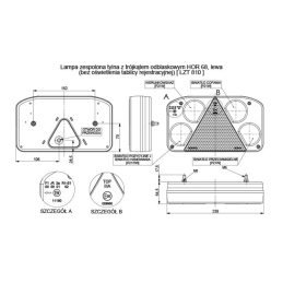 Lampa żarówkowa tak Kategoria lampy zespolona tylna Grupa lamp HOR 68 Strona montażu lewa Napięcie zasilające 12/24 V Przewód brak Światło pozycyjne tylne tak Światło przeciwmgielne tak Światło hamowania tak Kierunkowskaz tylny tak Odblask tak