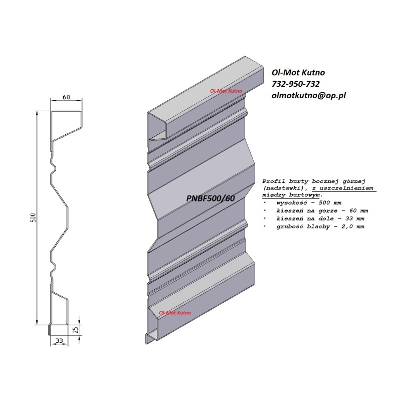 Panel burtowy górny nadstawka H500 - 2,0 mm