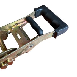 Wytrzymałość pasa [w naciągu]: LC=1500 daN Wytrzymałość pasa [na opasaniu]: LC=3000 daN Rozciągliwość: &lt;5% przy LC Szerokość taśmy: 35mm Zwróć uwagę na naciąg (grzechotkę) - jest ona wykończona gumowym tworzywem, które sprawia bardzo wygodne napinanie pasa.
