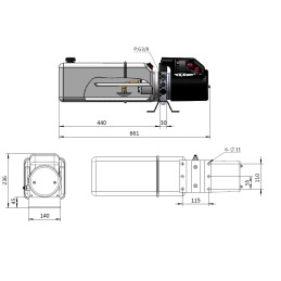 Pompa hydrauliczna do wywrotu Moc silnika: 3,0 kW Napięcie elektryczne: 24 V Pojemność zbiornika oleju: 13 L Maksymalne ciśnienie pracy: 180 bar Wydajność pompy: 2,6 cm3/obrót, w tym zestawie 7L/min do 12L/min Przyłącze gwint wewnętrzny: 3/8"
