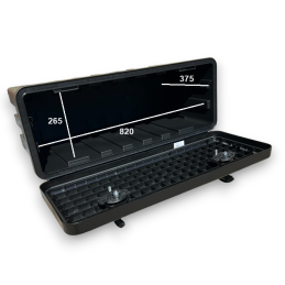 Skrzynka na pasy narzędzia Wymiary podane na zdjęciu. Pojemność 24 litry. Kluczyki w zestawie. Otwierana na bok.