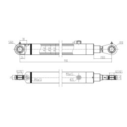 Siłownik dwustronnego działania Wymiary: - Długość siłownika złożony 870 mm - Całkowita długość siłownika po rozłożeniu 1510 mm - Skok / wysuw tłoczyska 640 mm - Średnica tłoczyska 28 mm - Otwory na sworzeń 30 mm - Średnica zew. siłownika 60 mm - Ciśnienie nominalne 16 MPa Wymiary podane na rysunku UWAGA!!!! Cylinder posiada typowe uszczelki. Można je...