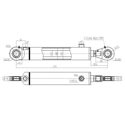 Siłownik dwustronnego działania Wymiary: - Długość siłownika złożony 973 mm - Całkowita długość siłownika po rozłożeniu 1603 mm - Skok / wysuw tłoczyska 630 mm - Średnica tłoczyska 45 mm - Otwory na sworzeń 40 mm - Średnica zew. siłownika 90 mm - Ciśnienie nominalne 16 MPa Wymiary podane na rysunku UWAGA!!!! Cylinder posiada typowe uszczelki. Można je...
