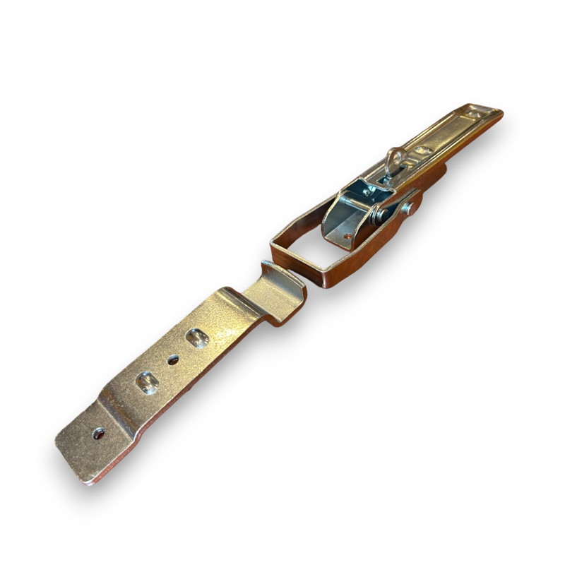 Zamek spinacz do burty w raz z zaczepem Wymiary podane na rysunku technicznym Stal ocynkowana.