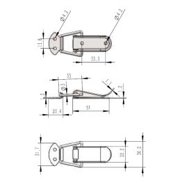 Zamek spinacz do burty w raz z zaczepem Wymiary podane na rysunku technicznym.