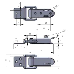 Zamek spinacz do burty w raz z zaczepem Wymiary podane na rysunku technicznym.