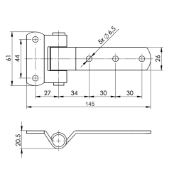 Element zawiasa burty stalowej do wspawania. stal ocynkowana waga 0,30 kg wymiary podane na zdjęciu