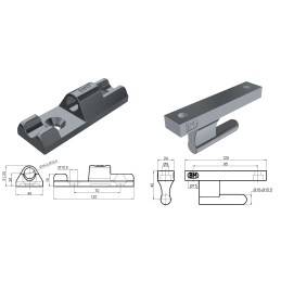 Zawias burty aluminiowej. ocynk płatkowy - DACROMET Zestaw: -czop -gniazdo -podkładka -śruby. powłoka - ocynk płatkowy - DACROMET waga 0,45 kg wymiary podane na zdjęciu